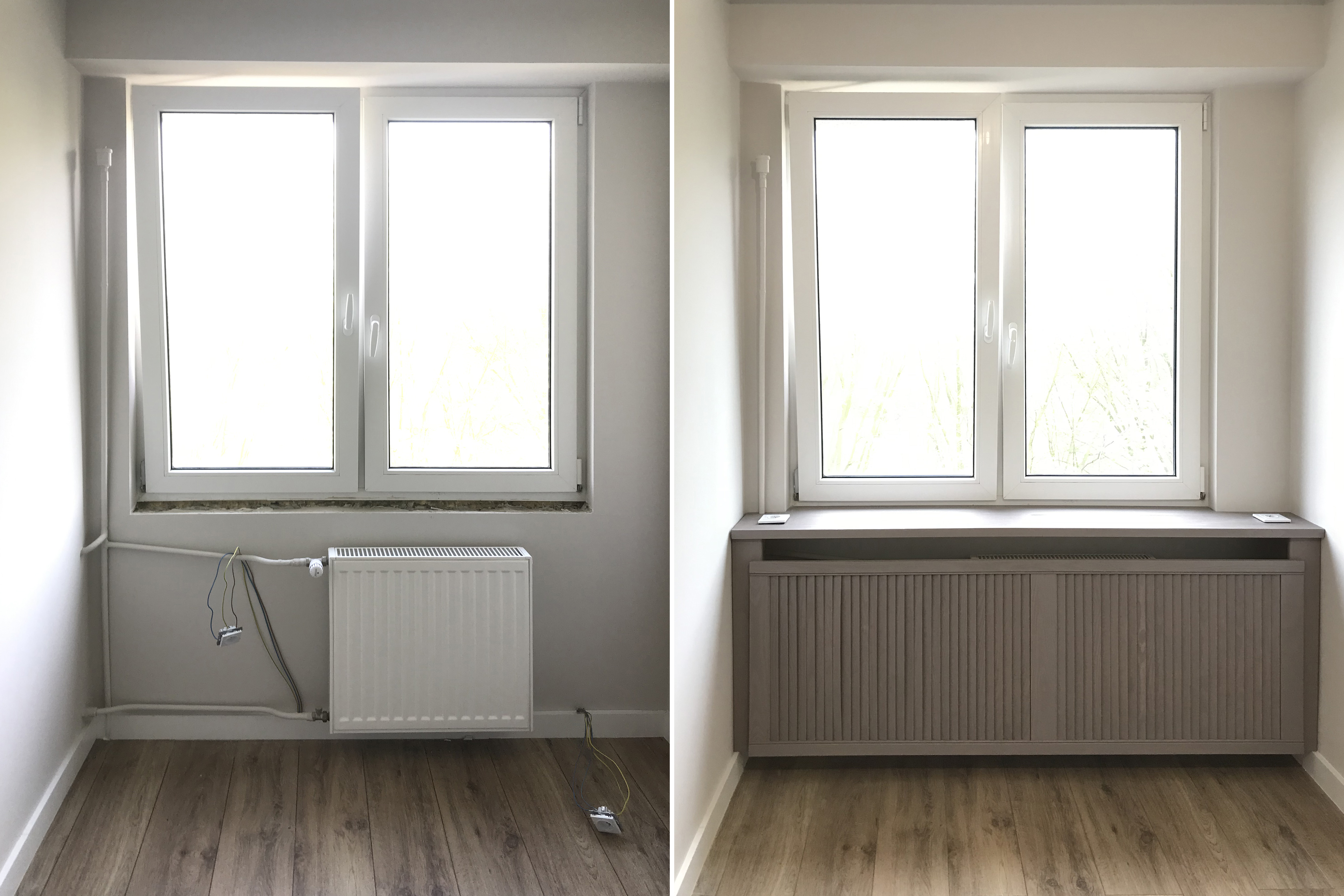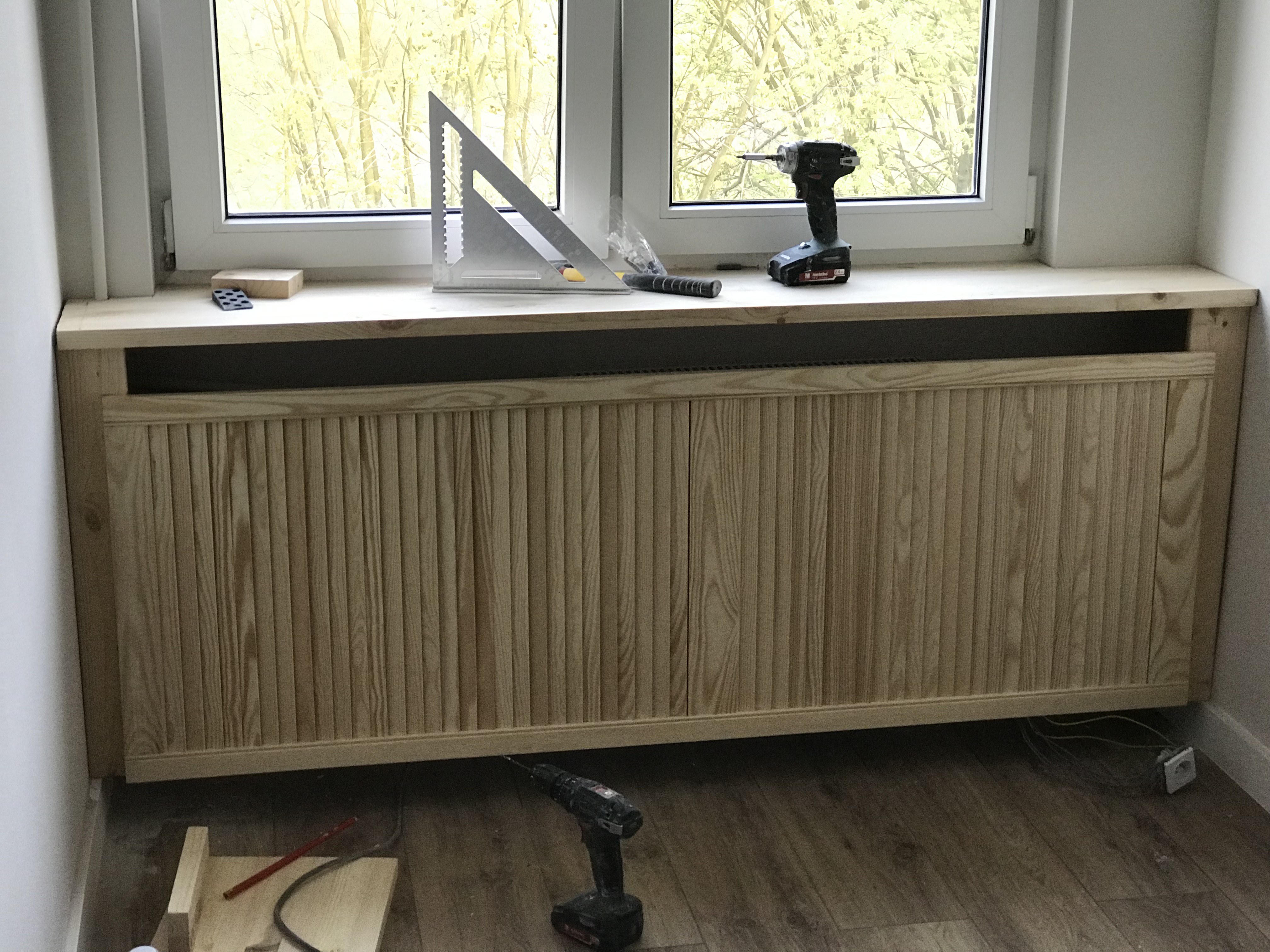 Maskownic grzejników w sklepach/sieci znajdziecie nieskończenie wiele. Są standardowy kształty/wymiary, jak też możecie zamówić na wymiar u stolarza. Co też super się sprawdza przy kompleksowych projektach, kiedy chcemy by nasze wnętrze było spójne stylistycznie. Jednak co w sytuacji, gdy kończą się fundusze, stolarz ma terminy których nie możemy zaakceptować lub po prostu zwiał?! Poniżej znajdziecie krótką fotorelację jak możecie wyjść z podbramkowej sytuacji. Wszystkie materiały zostały zakupione w ogólnodostępnych marketach budowlanych.