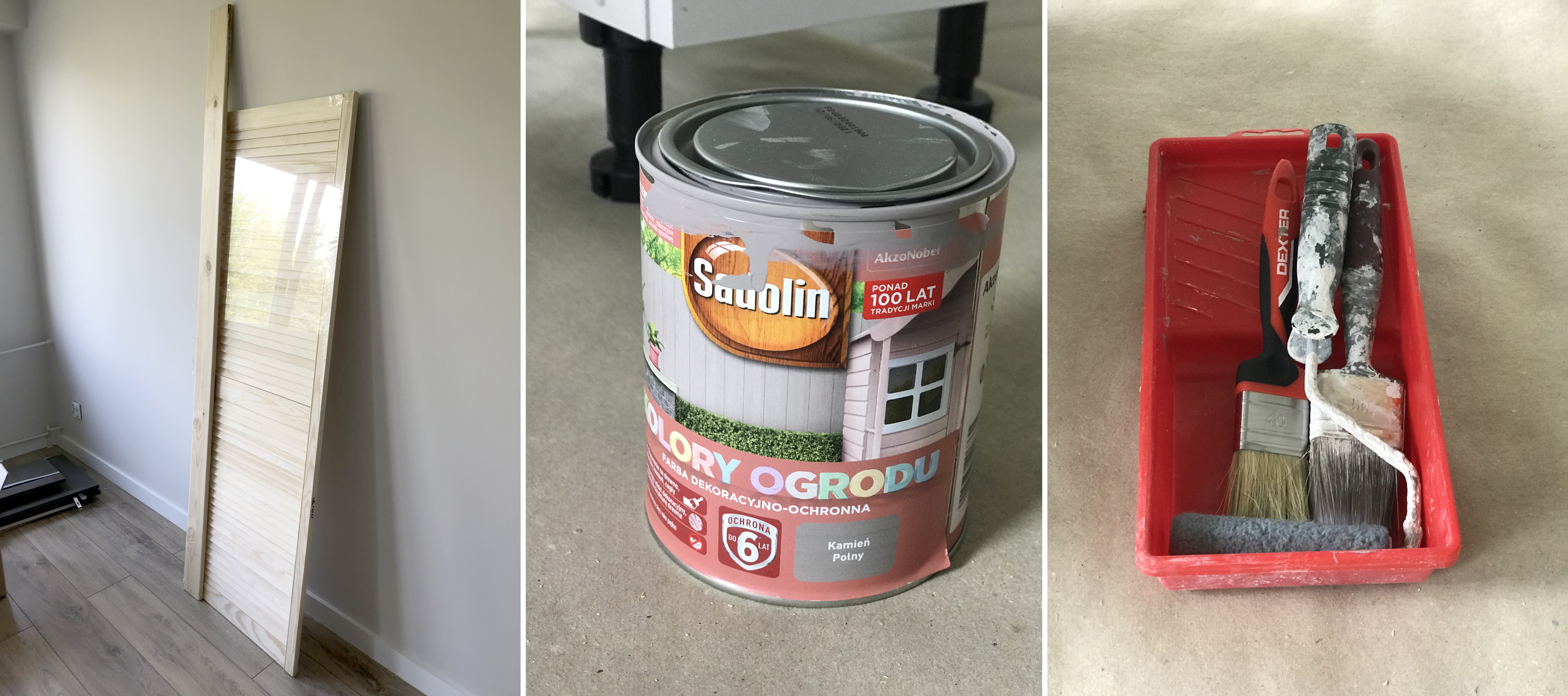 W zależności od potrzeb stylistycznych wnętrza malujemy całość na wybrany kolor. W naszym przypadku był to kamień polny firmy Sadolin. Jest to kolor taupe, który wpasuje się w większość wnętrz.