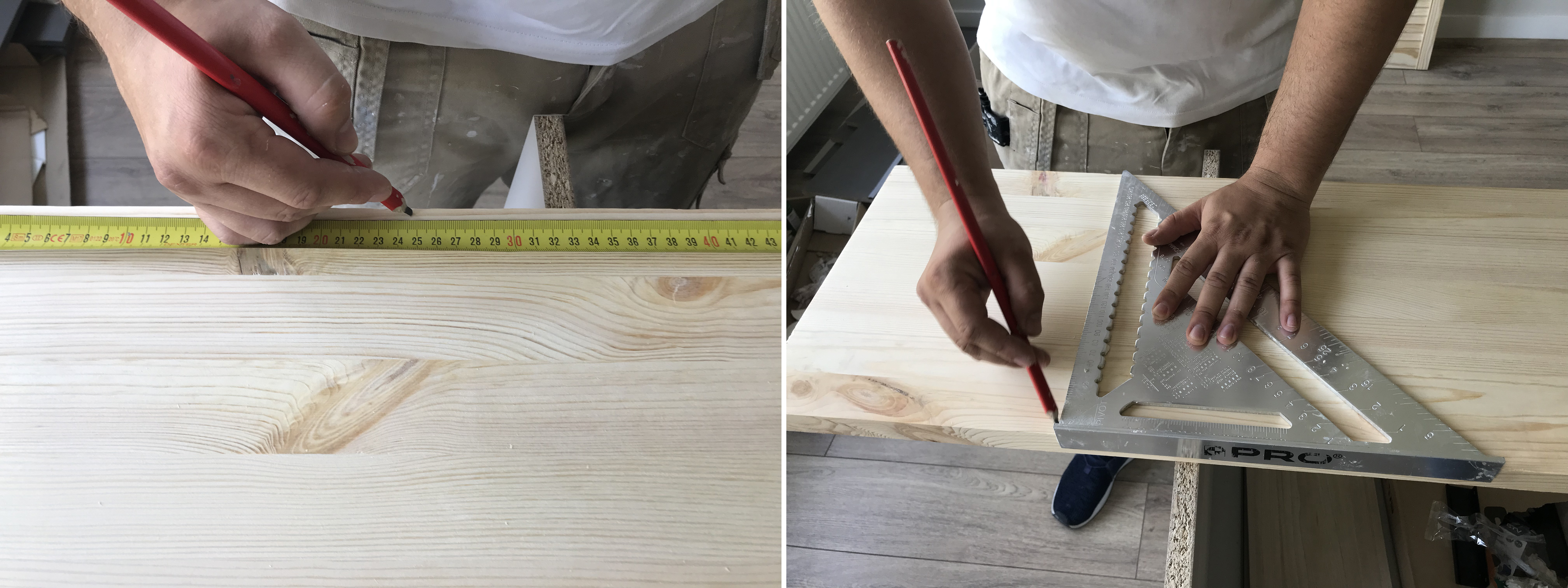 Wszystkie wymiary należy przenieść na deskę, która będzie spełniała rolę parapetu właściwego.