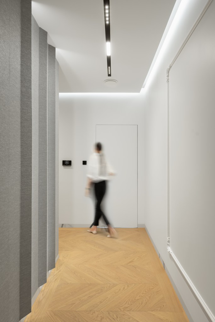 Spotykaliśmy się wiele razy, zanim ustaliliśmy wspólny front. Żeby każdy mógł przedstawić swój punkt widzenia musieliśmy się lepiej poznać. Właściciele na co dzień pracują w biznesie, dlatego lubią, żeby wszystko było doprecyzowane w najmniejszym calu i konkretne. Już na pierwszym spotkaniu wytyczyli swój kierunek – nowoczesny minimalizm – nieco zmiękczony, ocieplony, ale mimo wszystko bez zbędnych ozdobników i dekoracyjności. W takim „czystym” wnętrzu, gdzie nic nie rozprasza, a duża przestrzeń zachęca do złapania oddechu, po prostu lepiej im się odpoczywa.